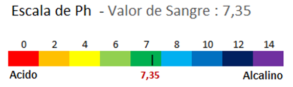 La Escala de pH va de 0 lo más ácido a 14 lo más alcalino, siendo 7 el valor neutro, nuestra sangre es ligeramente alcalina 7,365