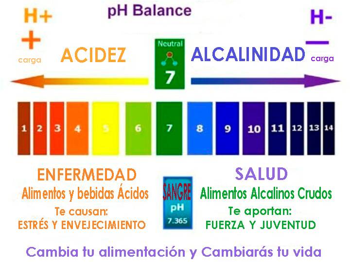 Una de las alertas de medición más comunes para saber si nos encontramos enfermos es medir nuestra temperatura, todos sabemos cuál es la temperatura en condiciones de estado de salud en una persona 36º a 36,5º cuando esta sube, y lo notamos porque nuestro cuerpo lo manifiesta, entonces sube también en nosotros la alarma de enfermedad y tomamos medidas para bajar la temperatura, esto lo conoce todo el mundo, claro está que la medida de temperatura 36,5º es la que el organismo tiene que tener para estar sano y más de 34 o menos de 42º para estar vivo y eso lo sabemos y lo cuidamos. Sin embargo  hay otra alerta no menos importante que la mayoría desconoce por la cual depende también que nos mantengamos  vivos  y es el pH de nuestra sangre, pH significa Potencial de Hidrógeno, y es la cantidad de Hidrógeno que tiene las células de tu sangre para un estado de salud, nuestro pH es 7,365 es el óptimo, pero puede oscilar en 7,3 a 7,45; en 7,2 ya estamos muertos, grave y muy sutil ¿verdad? sobretodo para desconocerla y ese desconocimiento hace que no podamos prevenir todas nuestras enfermedades, porque nosotros no somos conscientes de ello pero por suerte nuestra maquina maravillosa que es nuestro organismo, trabaja permanentemente para mantener el pH equilibrado, para poder mantenernos con vida, cueste lo que cueste. Y vamos a analizar como;